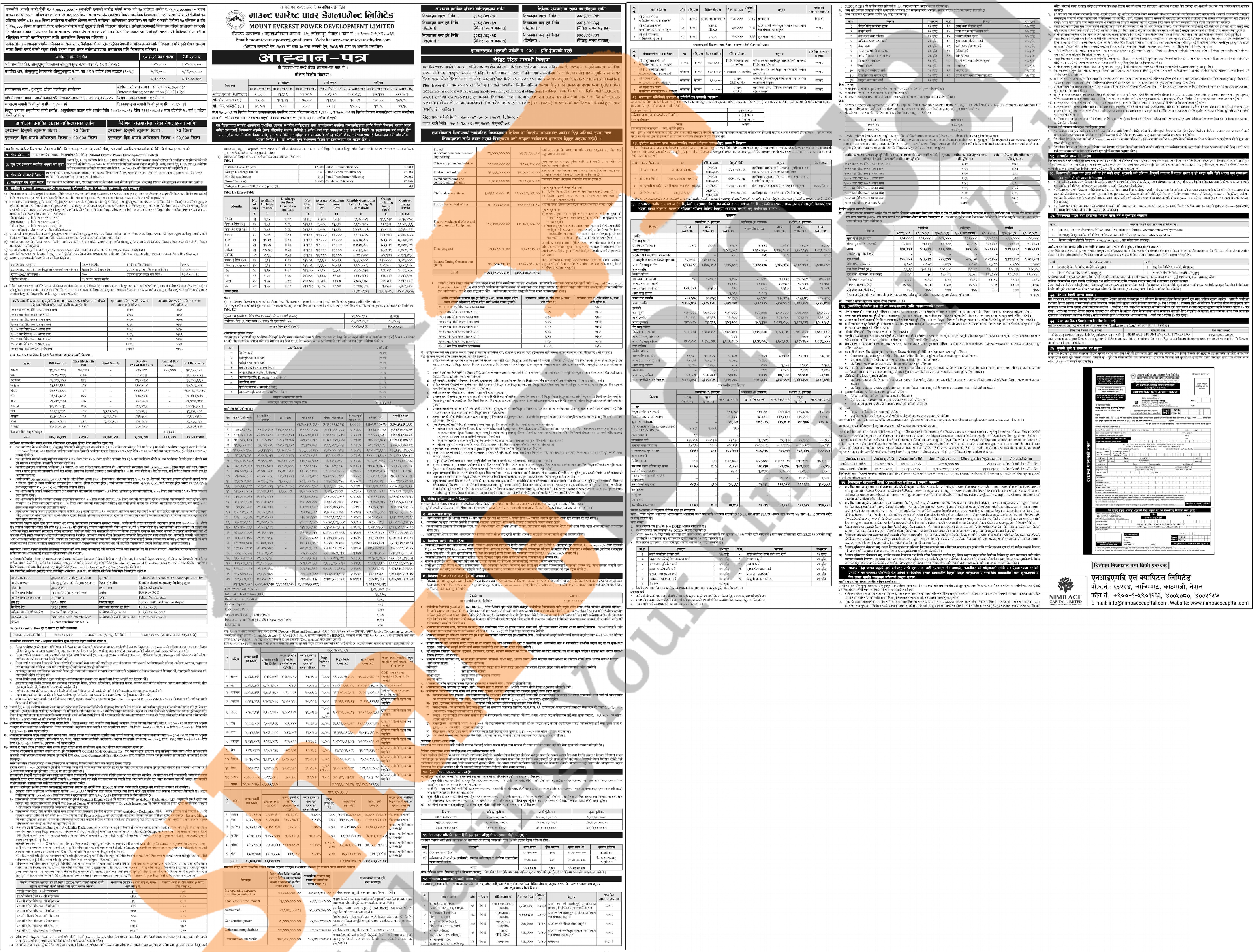 Mount Everest Power Development Limited has published an offer letter to issue an Initial Public Offering (IPO) to the project-affected locals of Solukhumbu District and Nepalese citizens working abroad.